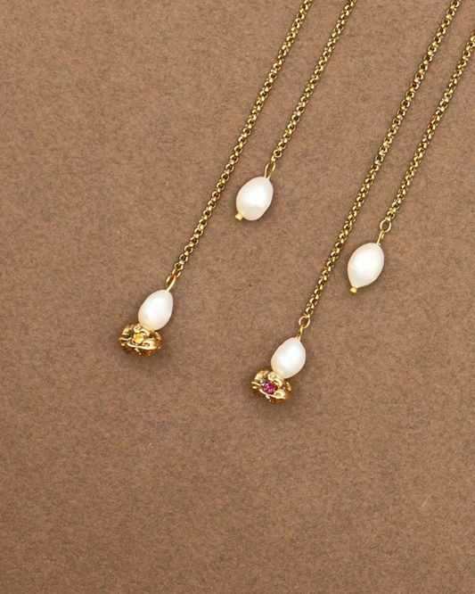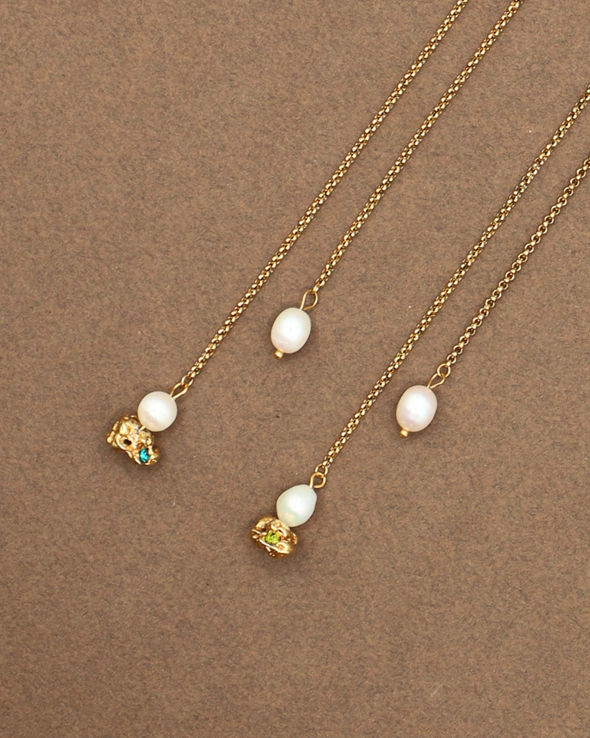 J’ai imaginé les boucles d’oreilles Perlées comme une paire à porter en toutes occasions. Leurs perles dorées vintage viennent se lover dans le creux des épaules, tandis que leur légèreté les fait danser à chaque mouvement de tête. Elles captent la lumière grâce aux perles de culture et à leur duo de cristaux colorés.