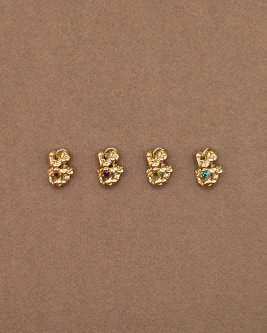 Chaque bijou porte déjà une histoire. Au moins 50 % de matières existantes, réinventées. Des fragments d’anciens bijoux. Des pièces vintage détournées de leur usage premier.